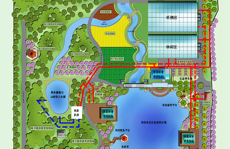 從園區(qū)水庫中提取清潔能源為種植區(qū)、養(yǎng)殖區(qū)、休閑區(qū)、辦公區(qū)冬季供熱夏季供冷,冬季室溫高于20℃,夏季低于24℃,無燃煤、無燃氣,實現(xiàn)“零污染、零排放”,將供冷供熱納入生態(tài)循環(huán)。系統(tǒng)采用全自動、無人化及網絡化監(jiān)控系統(tǒng),數(shù)據(jù)自動上傳云端,實現(xiàn)高端智能化遠程控制。